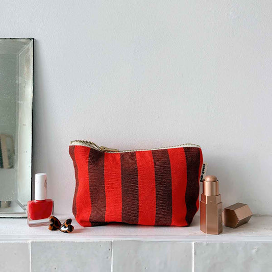 Trousse - Sofia Rayures Marron / Rouge