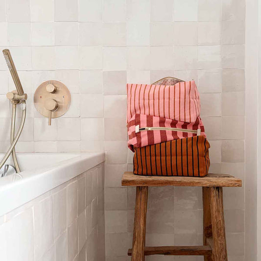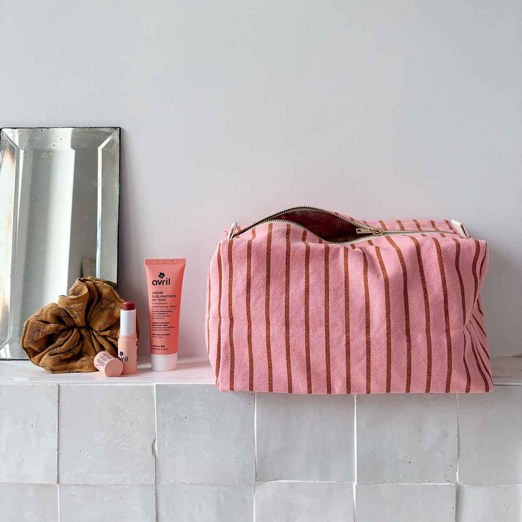 Trousse de toilette - Vic Rayures Brick / Pink
