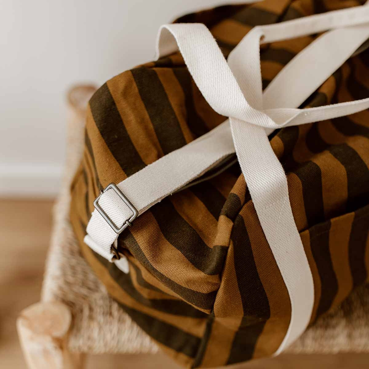 Sac bowling, qui servira aussi bien de sac à langer, que de sac de voyage pour une escapade le temps d’un week-end.
