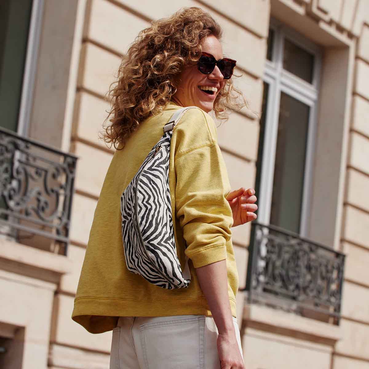 La banane, un indispensable pour transporter vos clés, téléphone, portefeuille, sans être encombrée par un sac à main !